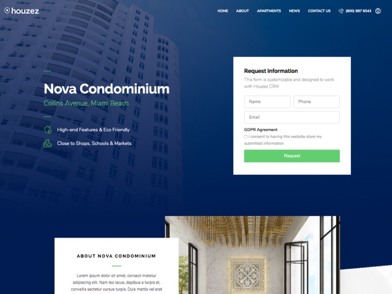 The Inquiry Form widget allows you to design unique forms to capture your leads. It connects with Houzez CRM and your email inbox to keep your work everything on track.