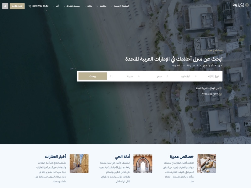 This menu tab features multiple search bar styles and placements built to help visitors easily find properties with precision and style.